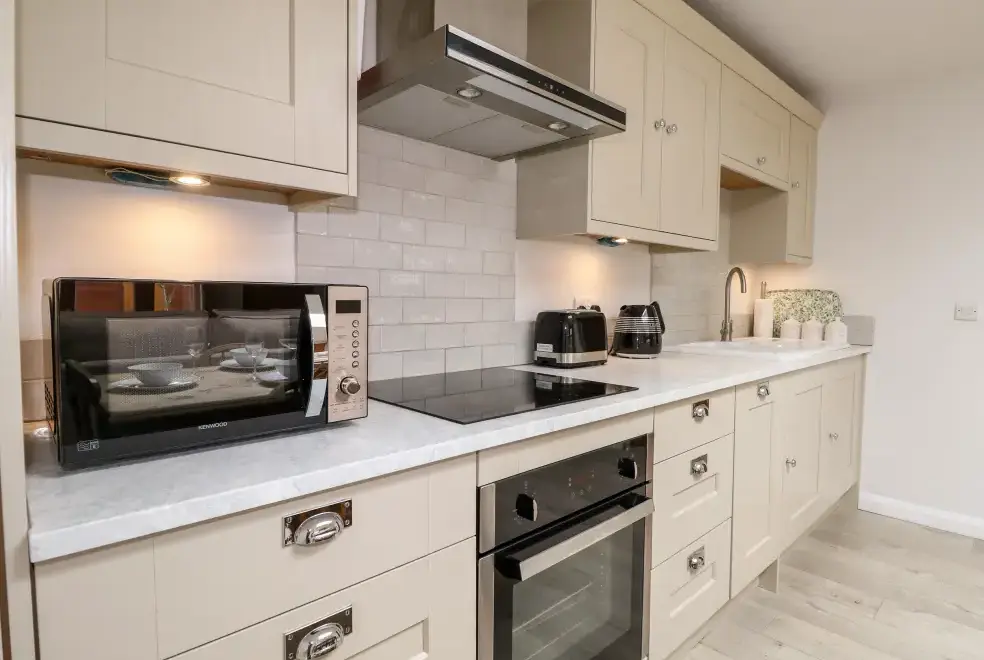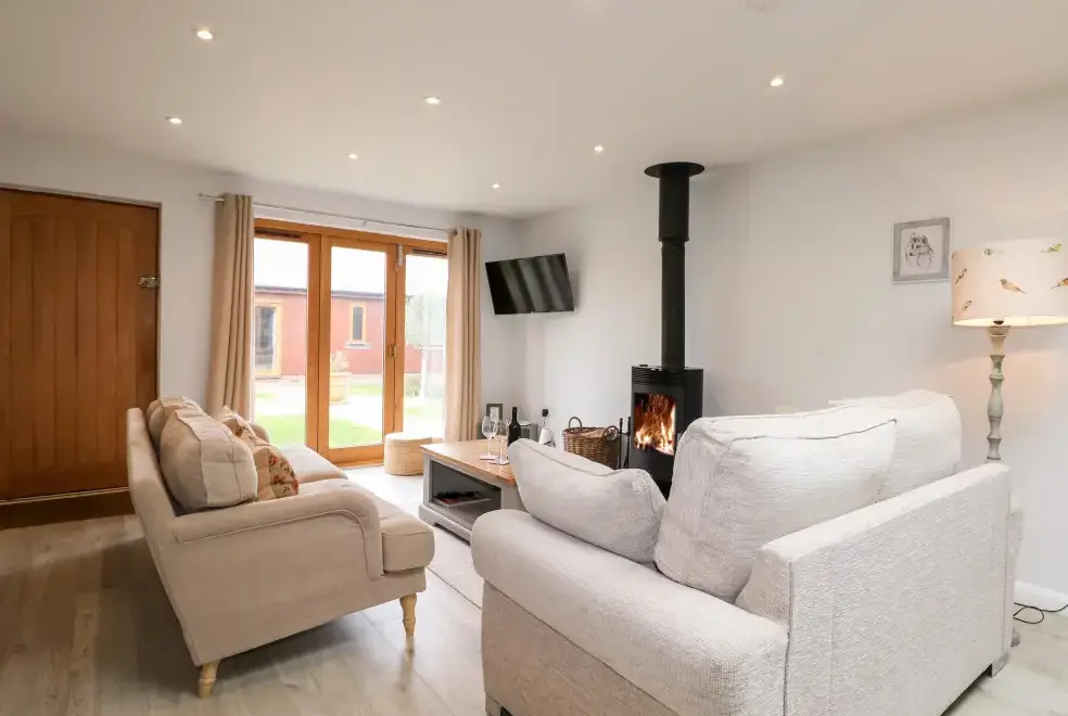 Fox's Den is perfect for accommodating a maximum of two adults and two children or three adults. The all-ground-floor layout includes a king-size double bedroom that offers Jack-and-Jill access to a bathroom equipped with a bath, walk-in shower, basin, and WC. The open-plan living area is enhanced by a comfortable sofa bed and a charming woodburner, ensuring a homely atmosphere.