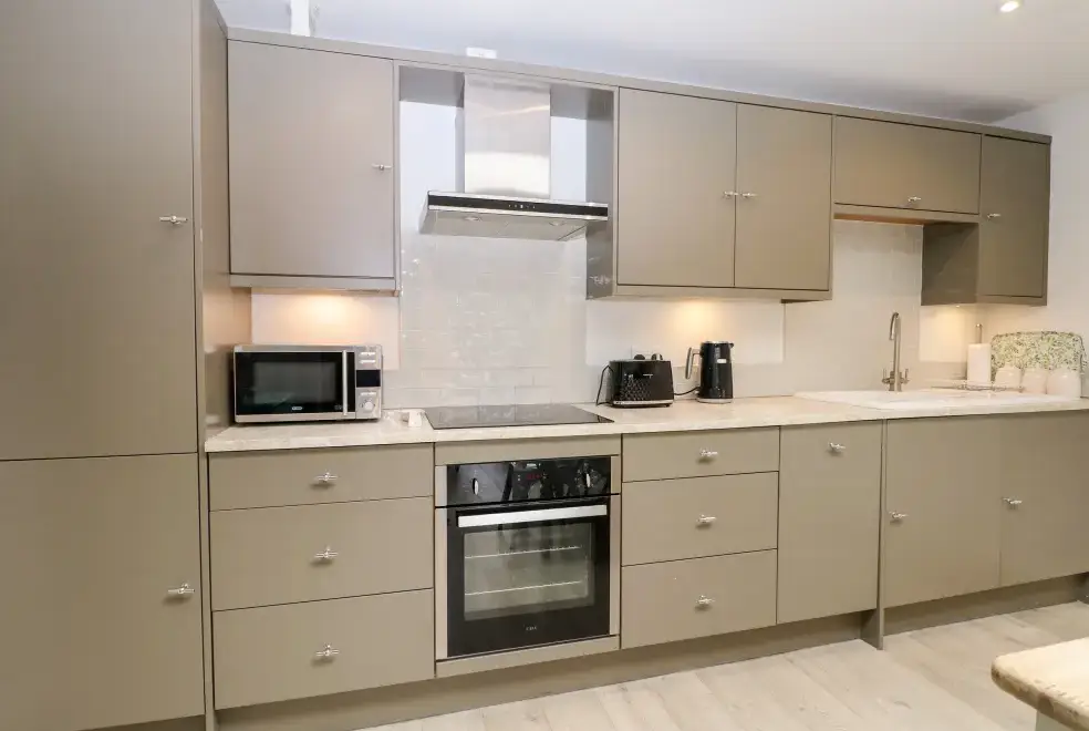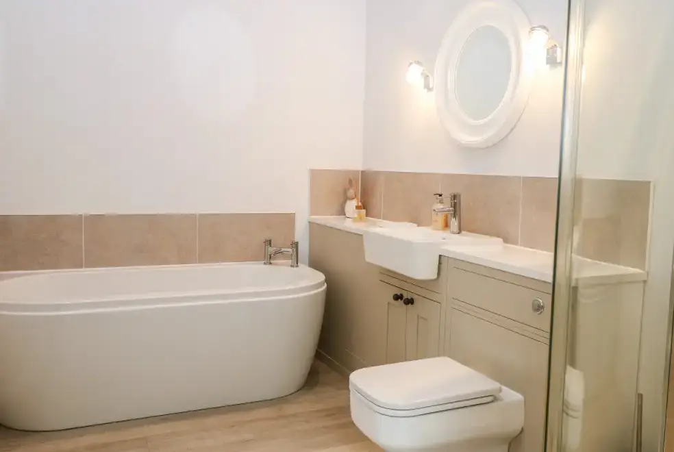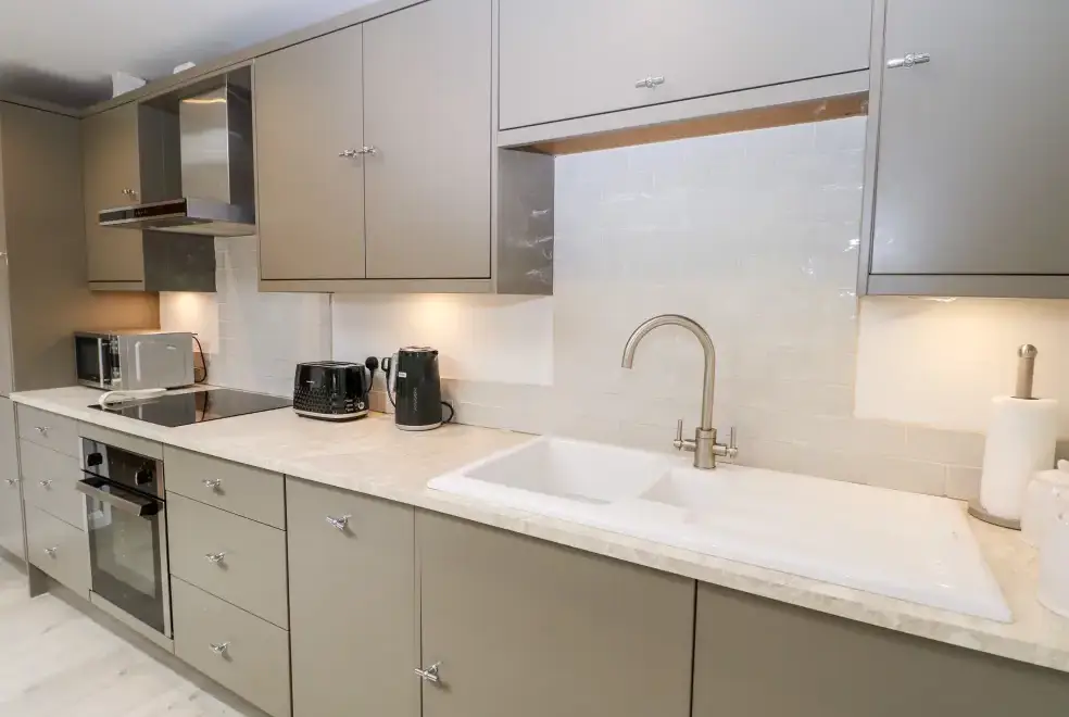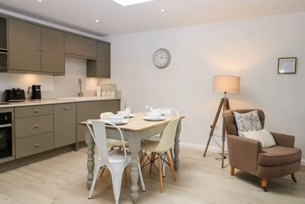 Set on the grounds of Abshot Manor and Country Club, Rabbit's Warren impresses with its stylish interiors. The open-plan living space features a well-equipped kitchen and a comfortable sitting area with a woodburner, ideal for relaxation. The king-size bedroom provides a sumptuous retreat, with Jack-and-Jill access to a luxurious bathroom that includes a bath, walk-in shower, basin, and WC.