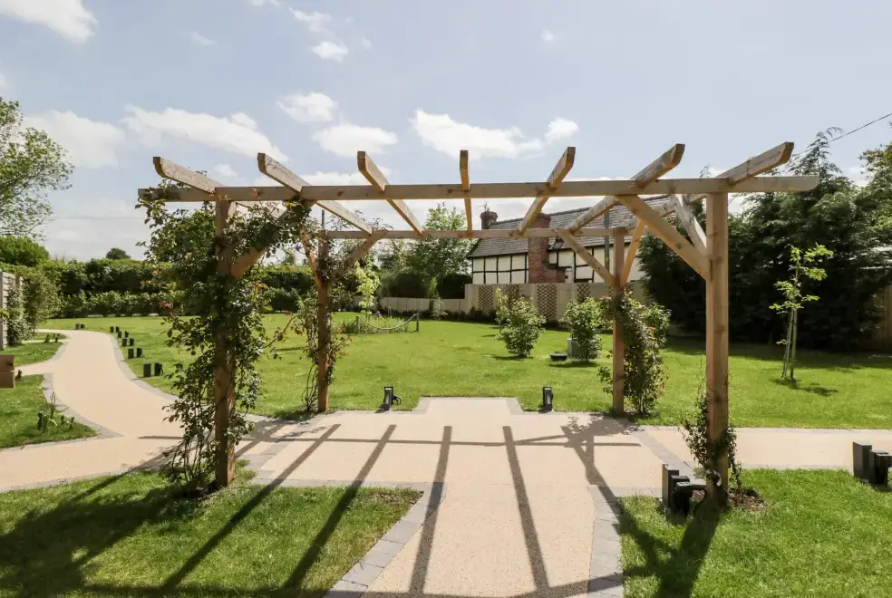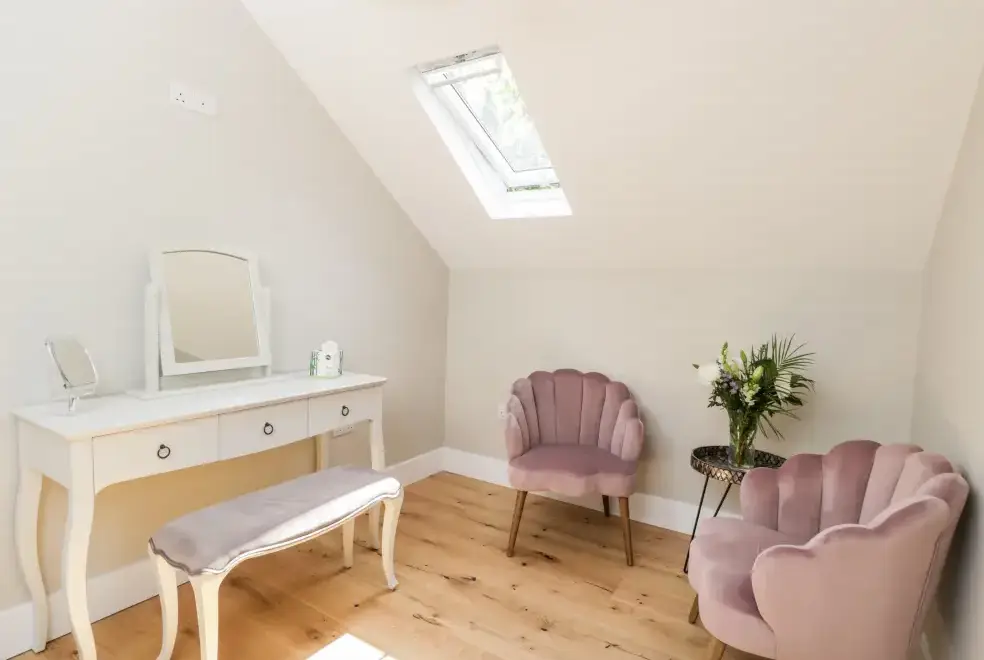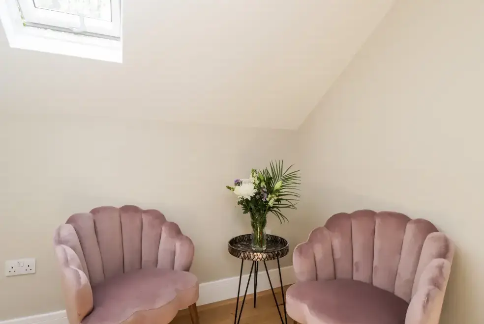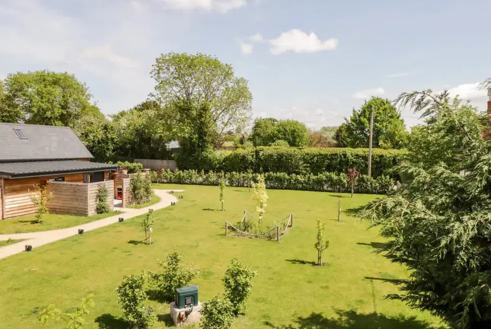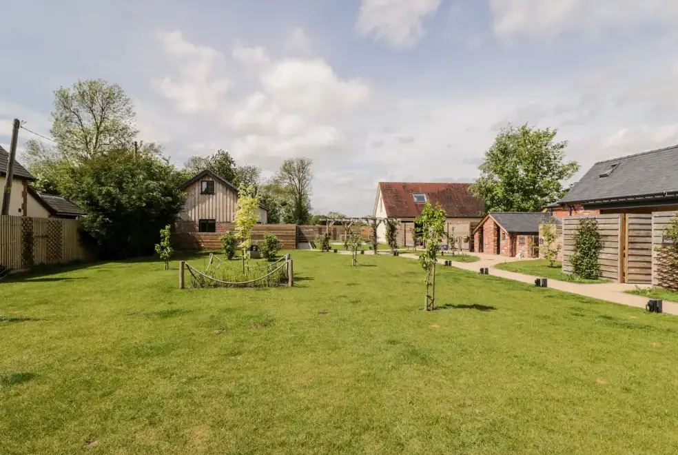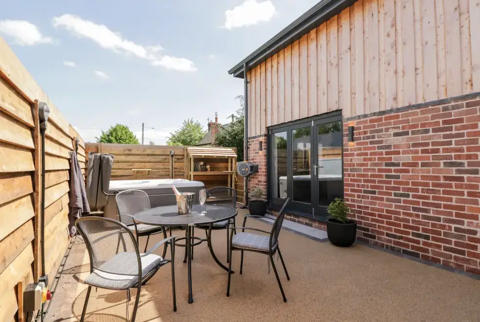 The Little Lug lodge boasts an inviting living space, featuring a kitchen/diner equipped with an electric oven, induction hob, microwave, fridge/freezer, and dishwasher. Relax in the sitting room complete with a Smart TV and a cosy woodburning stove. For added convenience, there's a cloakroom available. The Little Lug’s living areas offer a perfect blend of modern amenities and comfort, setting the stage for a romantic getaway in Hereford.Relax and Rejuvenate in the Little Lug's Outdoor Spaces