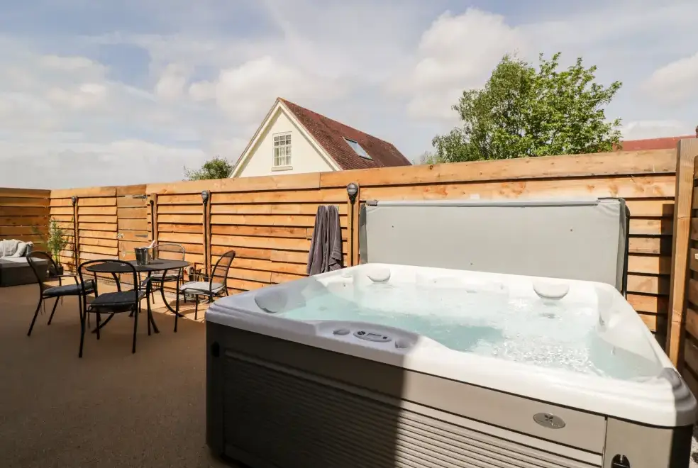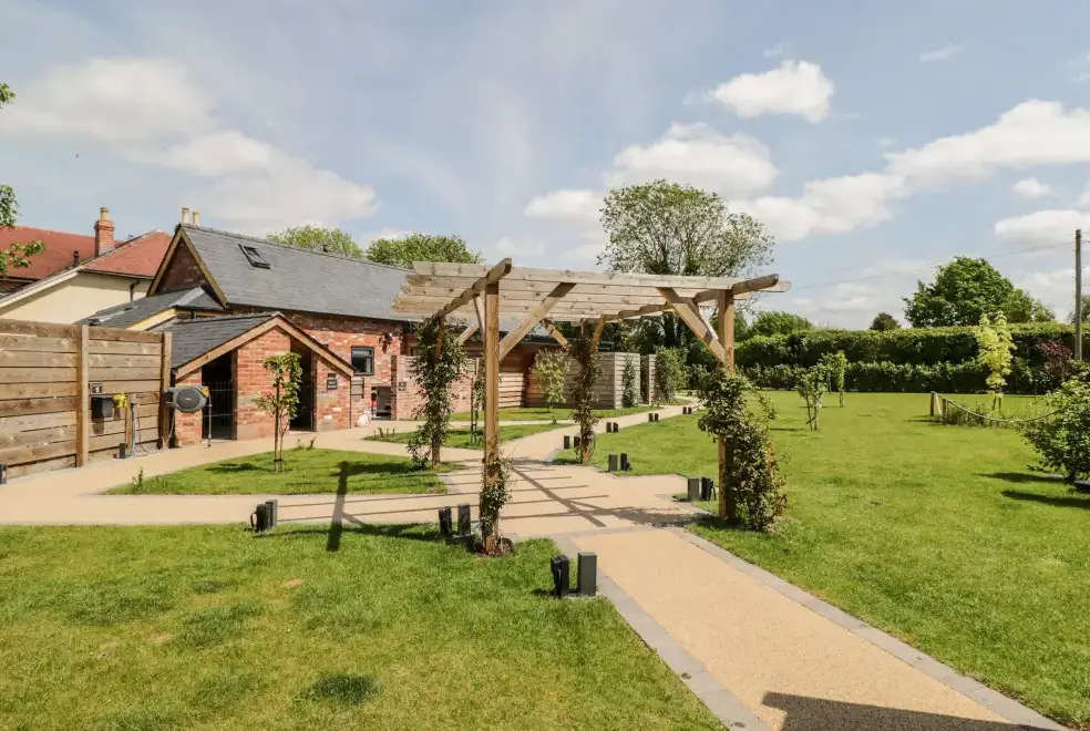 Outside, guests can enjoy an enclosed front garden with a patio, garden furniture, and a hot tub, perfect for unwinding under the stars. A communal lawn with seating and a barbecue area adds to the lodge's charm. The Little Lug provides a serene outdoor setting for a romantic retreat, just a stone's throw from Hereford's historic attractions.Discover a Quaint Retreat in the Heart of Herefordshire