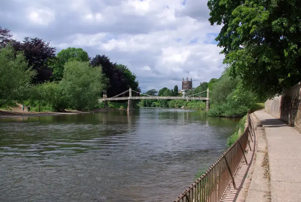 Hereford's picturesque Church Street with many interesting small shops specialising in quality goods leads up to the Cathedral Close surrounding the XI century Norman Cathedral and adjoining Mappa Mundi and Chained Library exhibition. Walk down to the riverbank, have a drink or eat overlooking the River Wye or walk along the banks to the open spaces of Bishops Meadow.