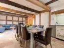 Living room; this spacious room has plenty of sofas and features a wood burning stove as well as doors that lead out to the garden. A selection of games and DVDs are available.