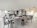 On the ground floor is the open plan living area, complete with stylish well-equipped kitchen with built in Sonos System, two fridges, chiller, electric hobs and ovens plus dining area and comfy seating area with gas fireplace. There is a separate small utility room with a washing machine and tumble dryer.
