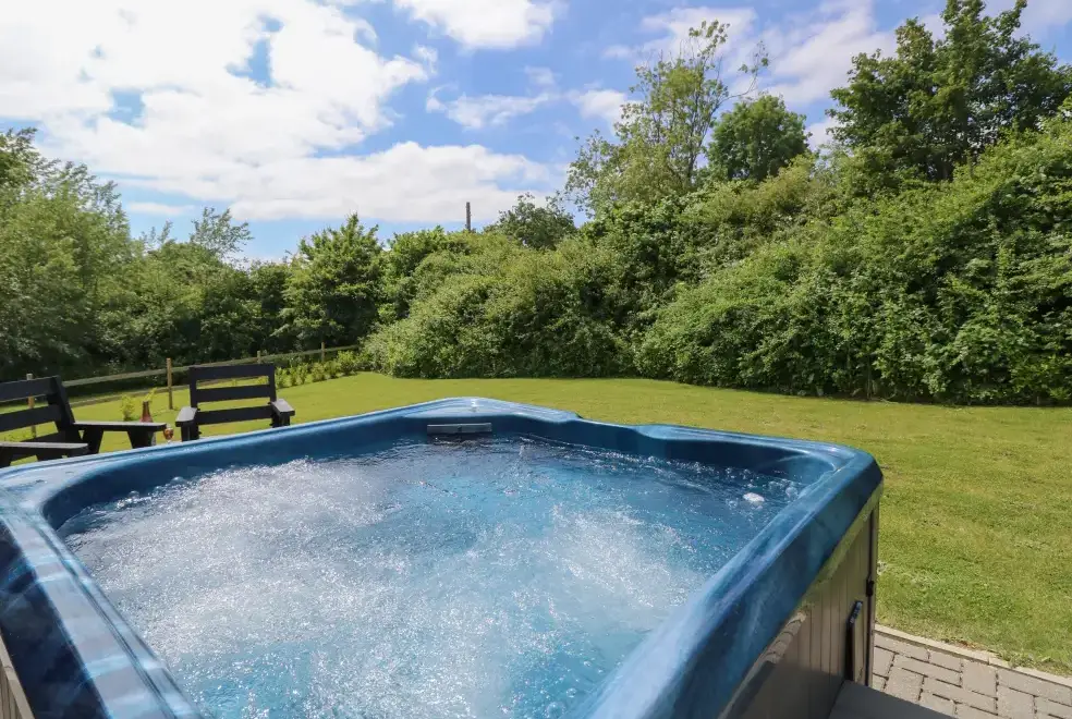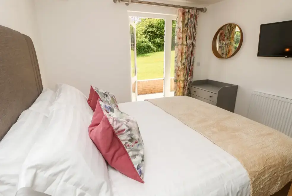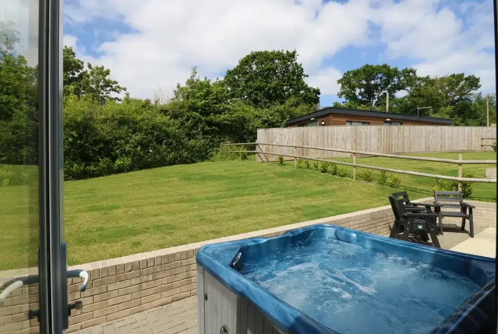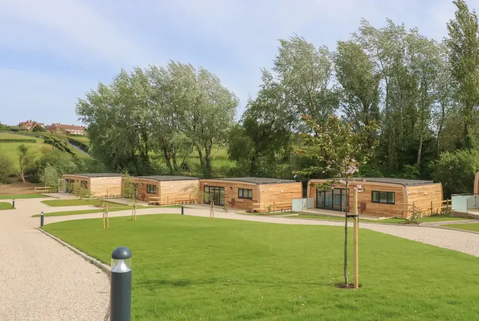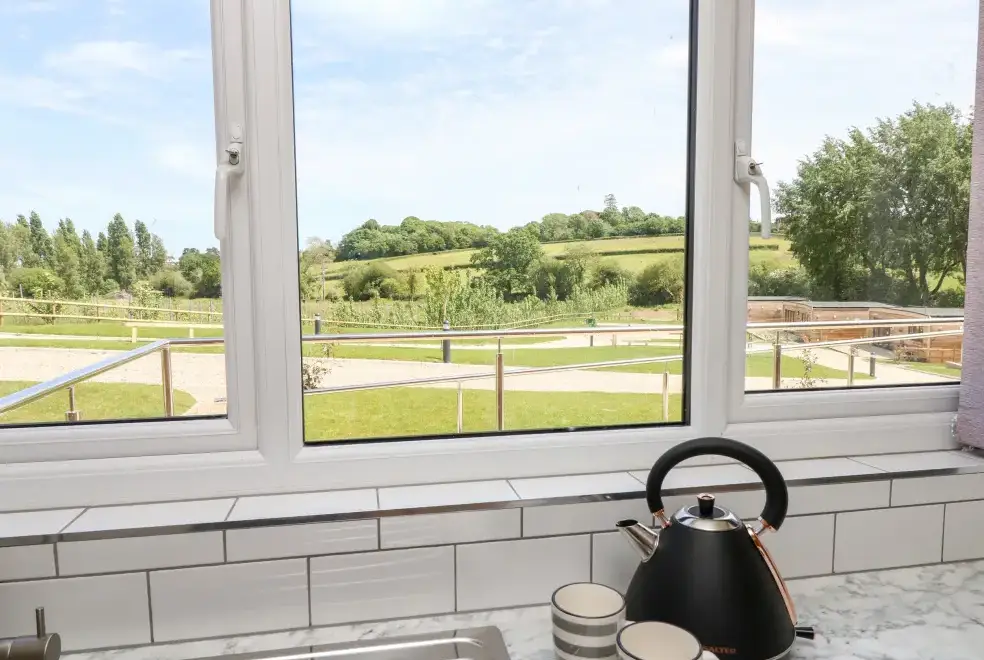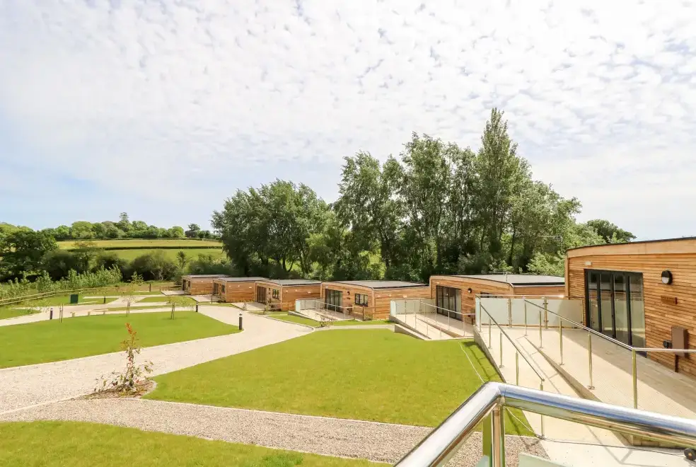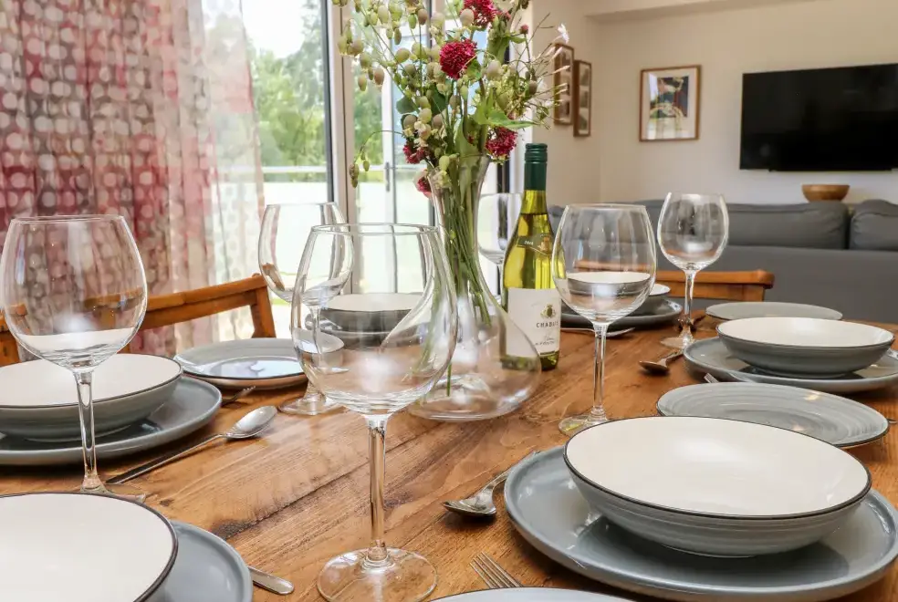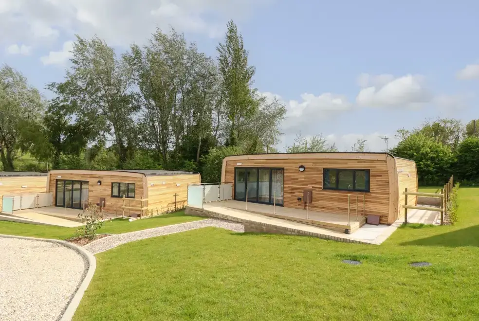 Barolo, a two-bedroom eco lodge on the Isle of Wight, offers a luxurious open-plan living area complete with a modern kitchen equipped with an electric oven, hob, microwave, fridge with ice box, washing machine, and dishwasher. The dining area provides ample seating, while the sitting room is perfect for unwinding with a TV. The property ensures comfort and convenience, ideal for a relaxing stay on the beautiful Isle of Wight.Luxurious Bedrooms with En-Suite Facilities
