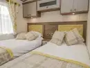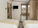 The second bedroom is a twin bedroom with two single beds separated by a bedside table. This room features the same decor and style of bedding and also has compact fitted furniture. The first bedroom has an en-suite bathroom with a bath and shower over, the second has an attractive shower room.
