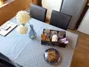 Kitchen / Dining Area: A fully fitted kitchen area with electric hob, electric oven, microwave, kettle, toaster and fridge. (All crockery, cutlery and cooking utensils are provided). Adjacent to the kitchen area is a four seat dining table.