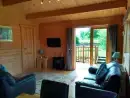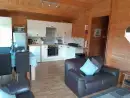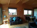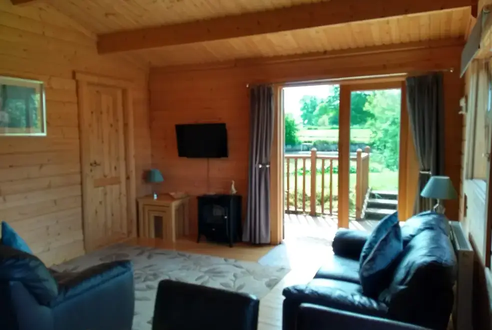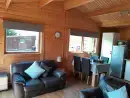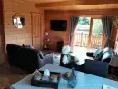 Lounge: Sofas, television with integral DVD and patio doors onto decking area giving views over the fishing lakes.