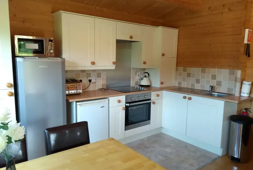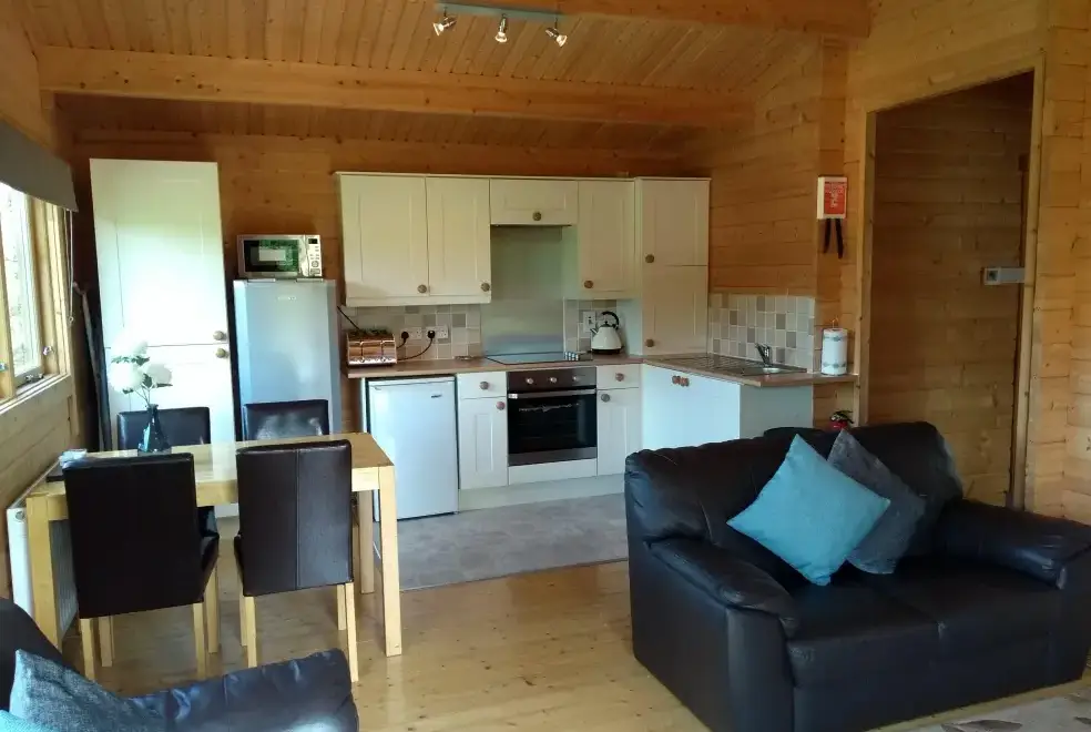 The timber lodge sleeps up to 4 people and is heated by LPG gas central heating, which is included in the price. Electricity is also included in the price. Prices start from £375 per week (Friday to Friday) including bed linen (not towels) and electricity.
