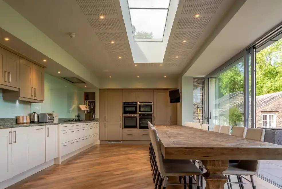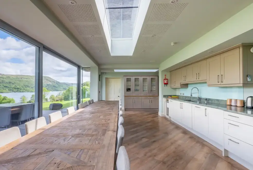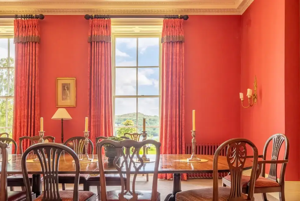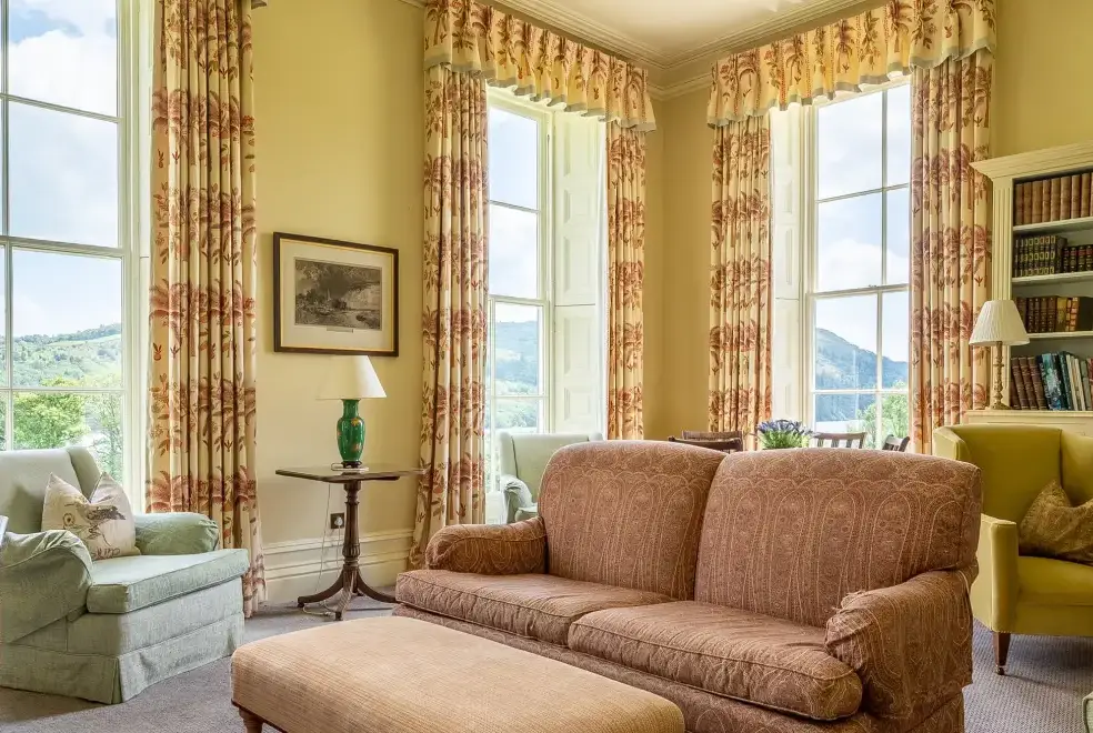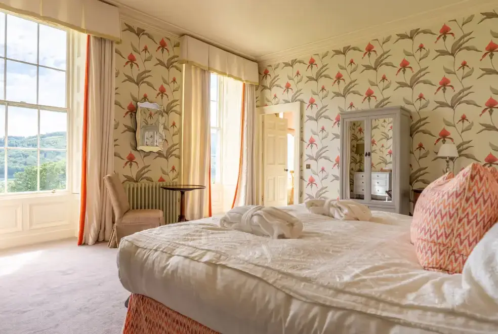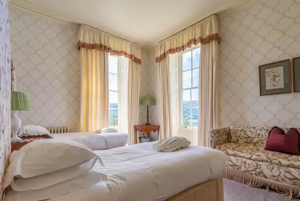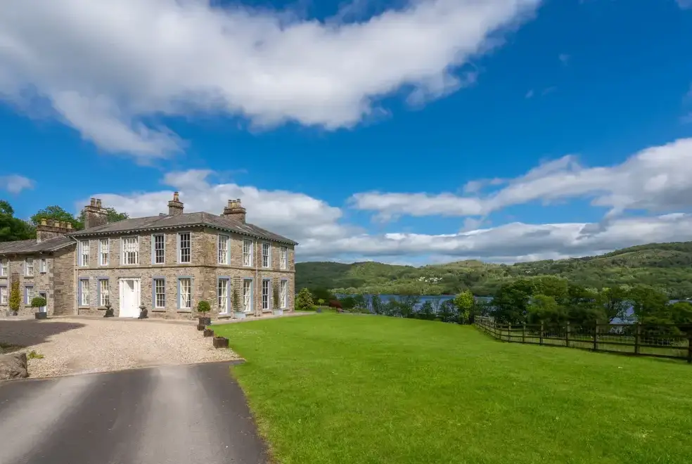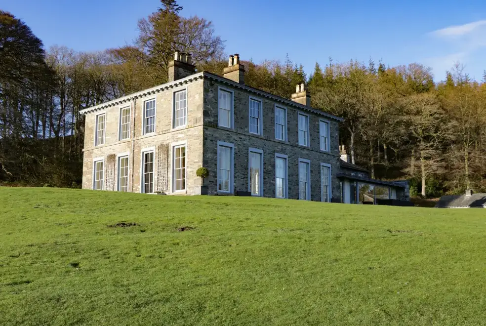 Silverholme is an exquisite Georgian manor house located on the picturesque Graythwaite Estate, adjacent to the stunning Lake Windermere in the Lake District National Park. Situated just five miles from Hawkshead, this luxurious property offers accommodation for eighteen guests, all with en-suite facilities. The main house features a range of bedrooms, including a ground-floor king-size and twin, super-king-size and two twins on the first floor, and two king-sizes and a twin on the second floor. Additionally, a separate Coachman’s Cottage houses a double bedroom with en-suite.