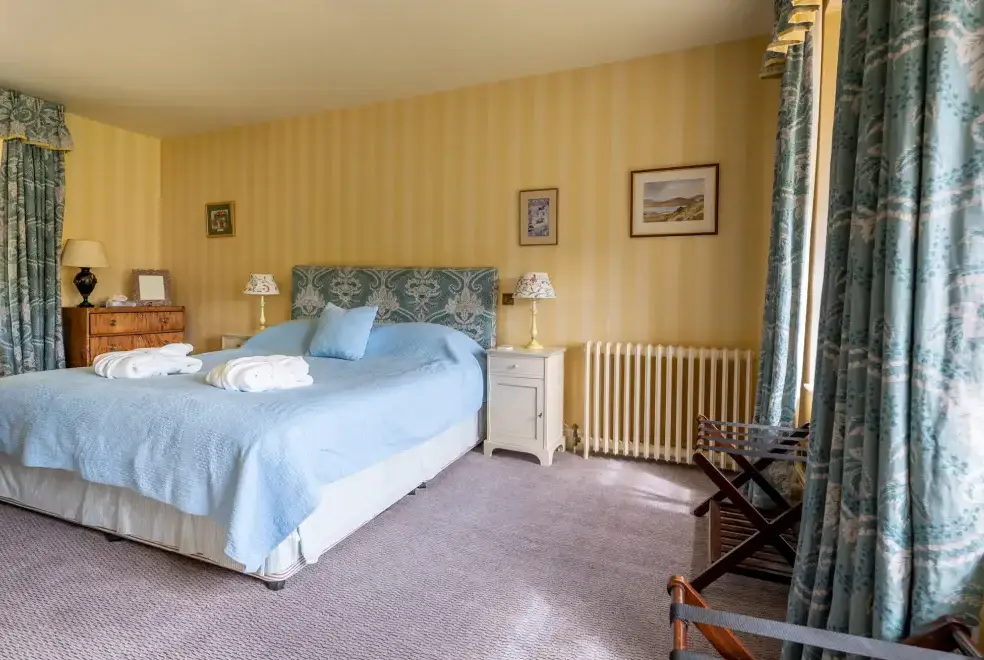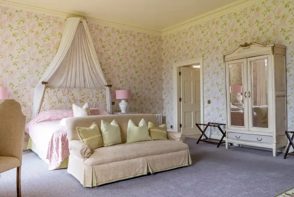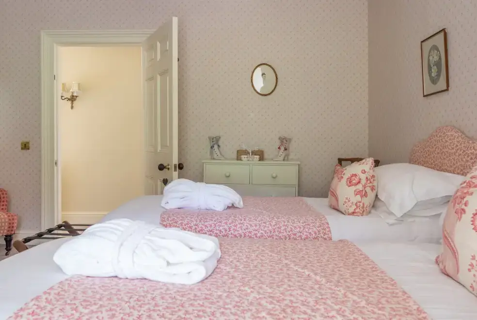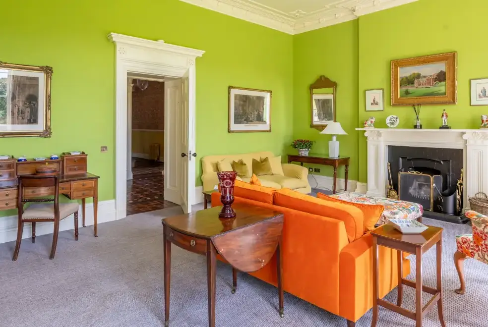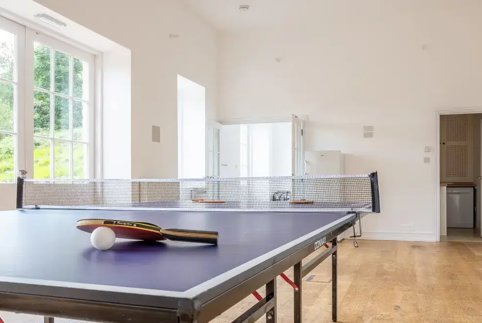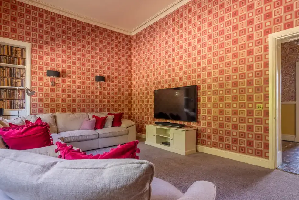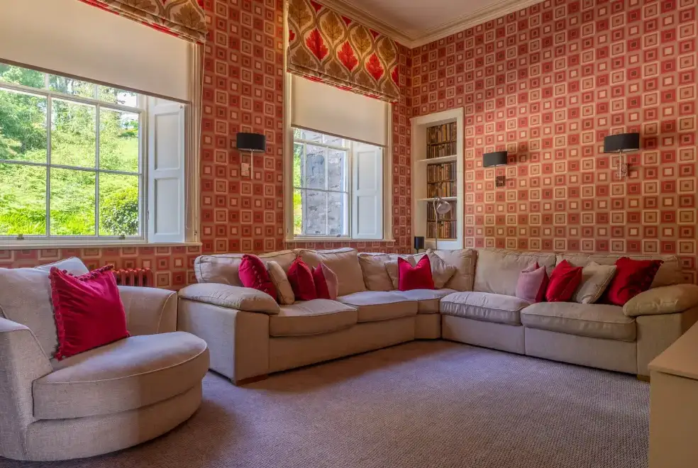 The manor house boasts a variety of exceptional amenities to ensure a memorable stay. Guests can enjoy a fully equipped kitchen with a breakfast table, a formal dining room, a drawing room with a woodburner, a library, and a cinema room with a 65” smart TV and surround sound. Outside, the property offers ample off-road parking, a front lawned garden with a patio, furniture, and a barbecue. The estate's leisure facilities, including a trout fishing lake, are just a 20-minute walk away.