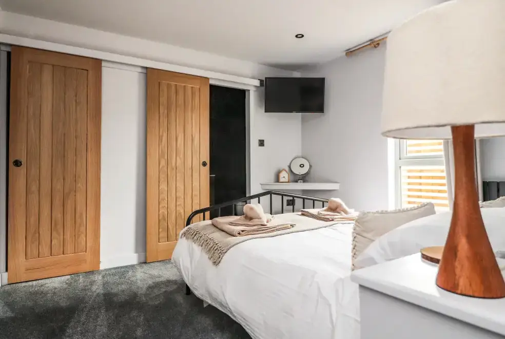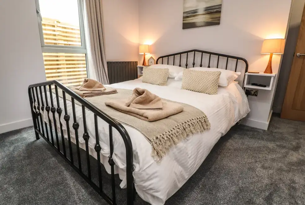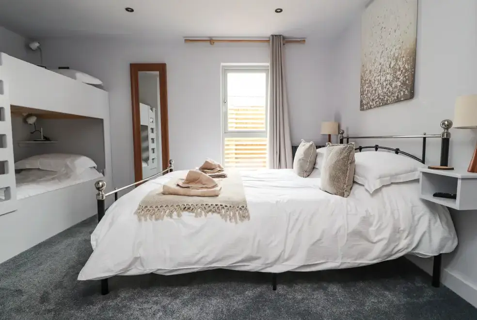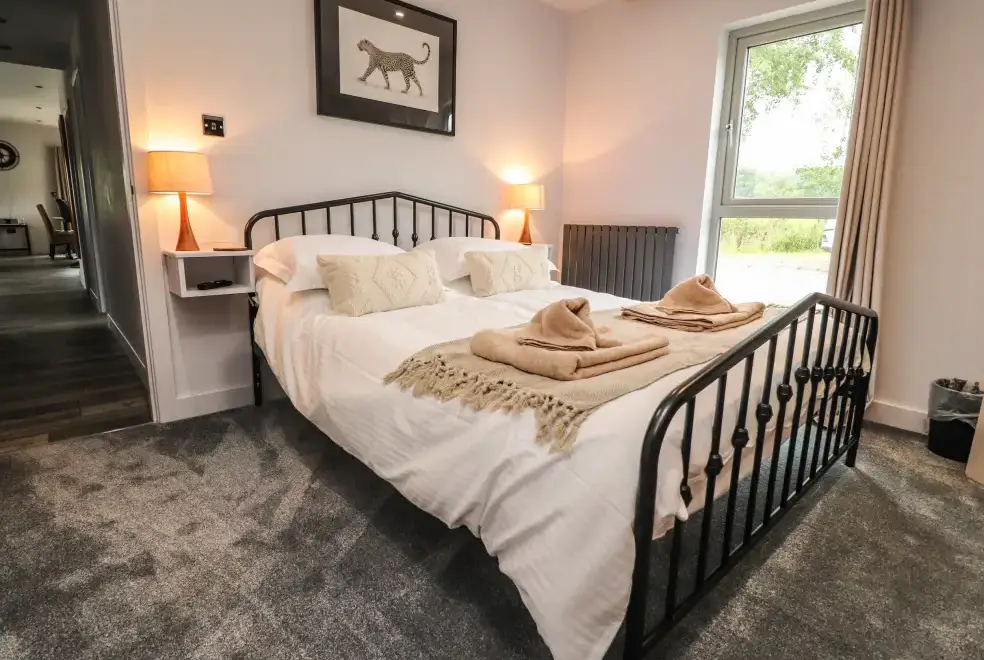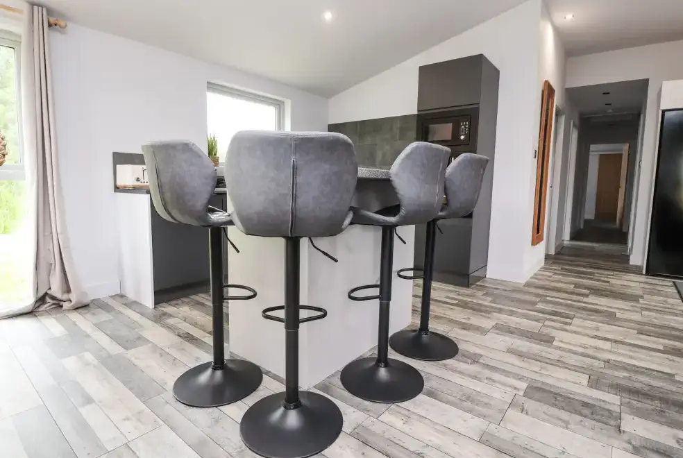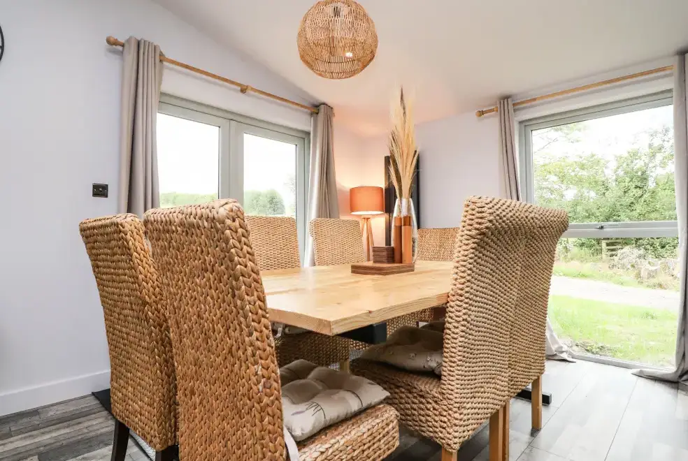 Experience the delightful Lodge 4 Box Tree, where you will find a contemporary open-plan living space that invites relaxation and enjoyment. The well-equipped kitchen is perfect for preparing meals, while the breakfast bar and dining table offer ideal spots for family gatherings. After a day exploring the picturesque surroundings, unwind in the sitting area or indulge in a soak in the freestanding bath. The property features homely décor, quality furnishings, and televisions in each bedroom, providing comfort and privacy. With two king-size en-suite rooms, a versatile twin room, and a family room with a king-size and cabin bunk bed, Lodge 4 Box Tree caters to both adults and children alike.