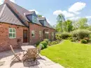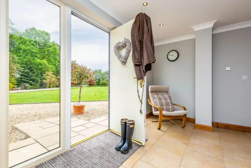 Broadleaf Lodge, set within three acres of grounds in a lively rural environment, is a spacious, uniquely designed house that comfortably accommodates six adults, two children, and two dogs. Built in 2003, this welcoming holiday venue is perfect for multi-generational families, couples, and friends with pets seeking a staycation or workcation in Lincolnshire. The ground floor features a large living area, a fully equipped luxury kitchen/breakfast/dining room, and a lounge with two comfortable leather sofas, a Smart TV, and a log burner with free fuel provided. The snug serves as an additional TV or playroom with a comfy sofa, Freeview, books, games, and children's toys, leading to a fully enclosed rear garden. The conservatory offers stunning views over the front paddock, perfect for relaxing or enjoying outdoor games such as badminton and croquet.