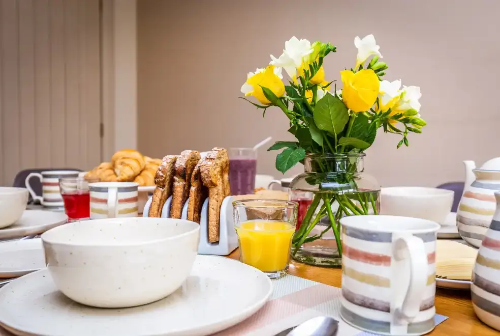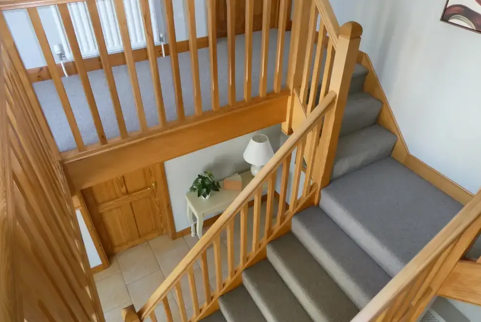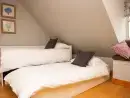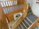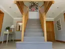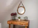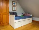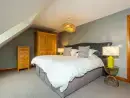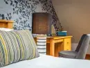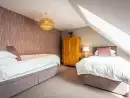 Upstairs at Broadleaf Lodge, refurbished in 2022 to the highest standards, hosts three well-appointed bedrooms. The master bedroom is a spacious family room with a king-size bed and a daytime truckle bed that can be configured as two full-size single beds, accompanied by an en suite. A charming window seat overlooks the front paddock and driveway. The rear and front bedrooms feature Zip and Link super king-size beds, which can be converted into twin beds upon request for a customised sleeping experience. The luxurious family bathroom includes a free-standing slipper bath and a large walk-in shower. Enjoy bird watching or twilight bat viewing from the covered balcony with a bistro set, overlooking the front paddock.