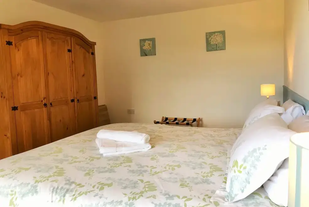 The one bedroom can sleep up to 3 as it has a Super King zip and link bed, and a fold away single bed is available on request.