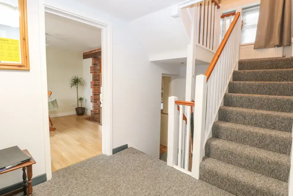 Sleepeezy is a charming brick and flint cottage nestled on the outskirts of the picturesque north Norfolk village of Little Snoring. This delightful accommodation is attached to the owner's home and offers a tranquil retreat for visitors seeking a comfortable stay. The cottage sleeps five guests across three inviting bedrooms: one double room with an en-suite shower, basin, and WC, alongside a twin and a single room. For added convenience, there's a folding bed available. Guests can enjoy a bathroom equipped with a bath, basin, and WC, as well as a ground floor cloakroom with a basin and WC.
