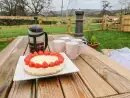 • Sociable open plan living area, ideal for socialising with friends and family. This living area comprises of a lounge with comfy sofas where you can relax and watch the 42” Smart TV or appreciate the country views, and a well-equipped kitchen with dining area,• Double bedroom with en-suite bathroom (bath with shower over, basin and WC)