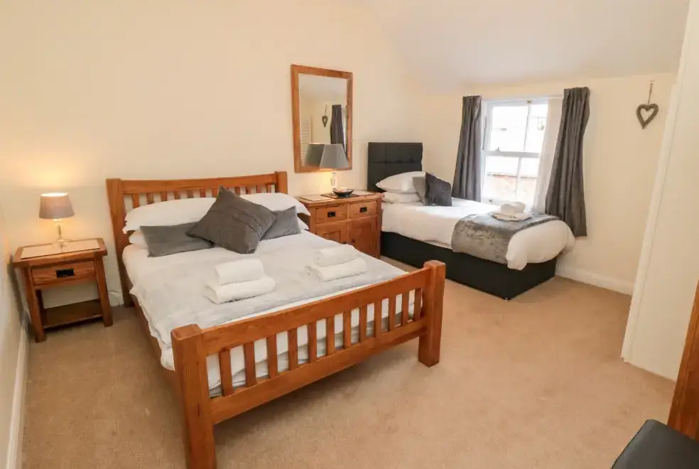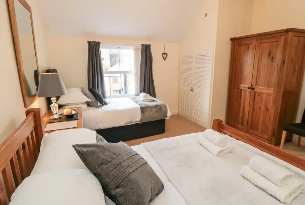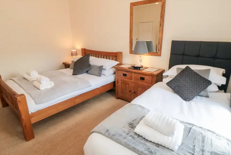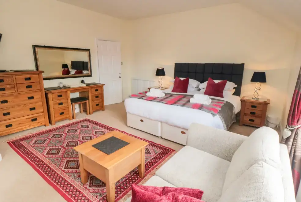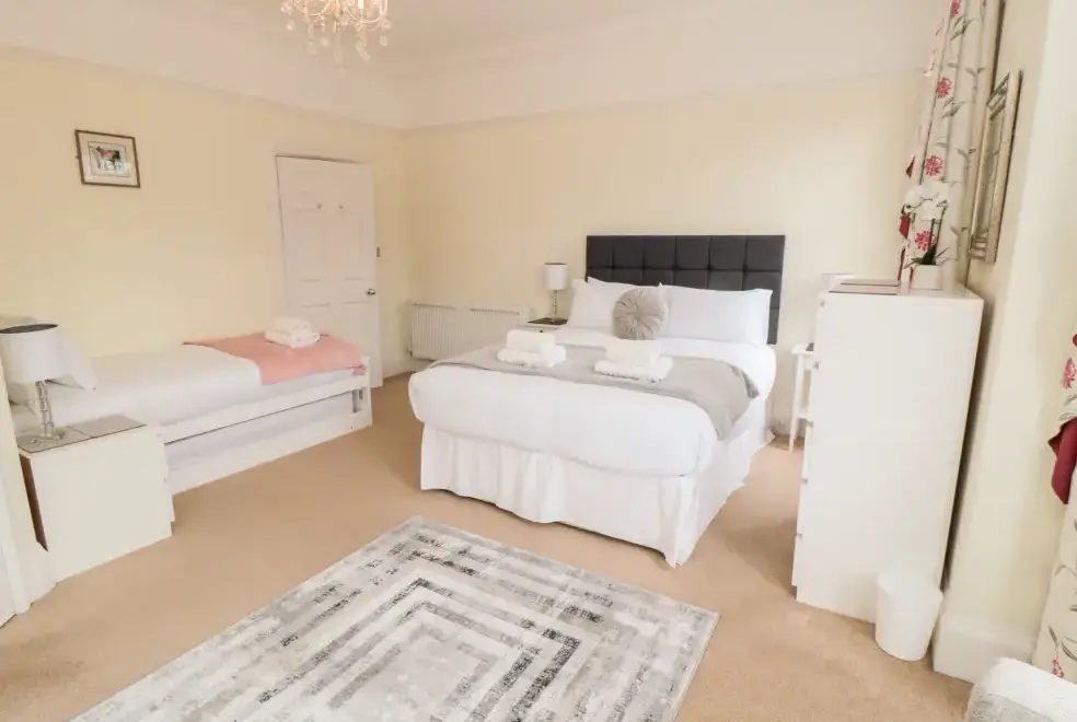 This five-bedroom townhouse offers flexible sleeping arrangements, making it suitable for various group configurations. The bedrooms include a king-size (zip/link) with TV, a family room with a double and a single bed, a second-floor double, a first-floor family room with a king-size and single with a truckle bed (ideal for children), and a superking size (zip/link) with TV. With en-suite facilities and convenient cloakrooms, comfort is guaranteed.