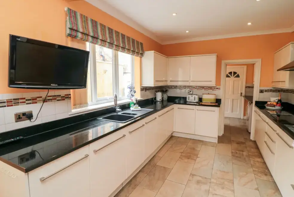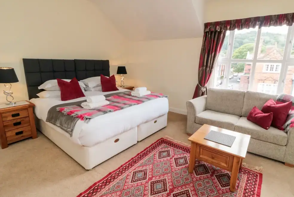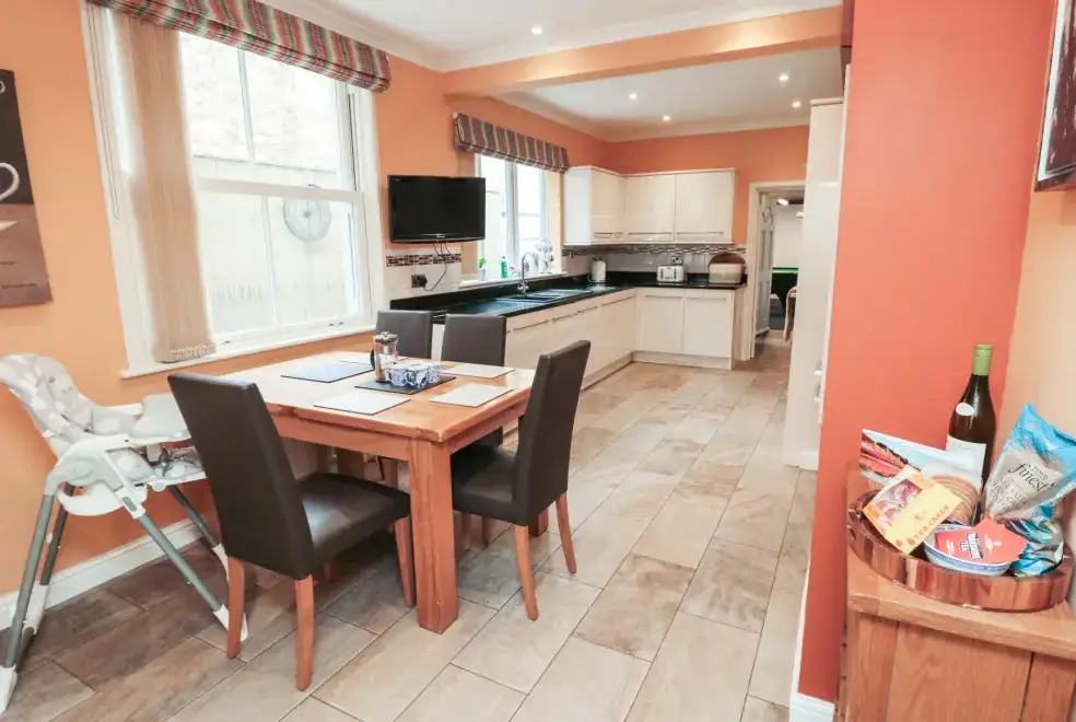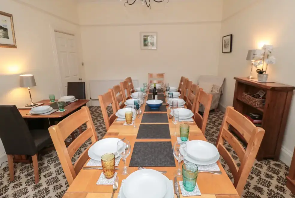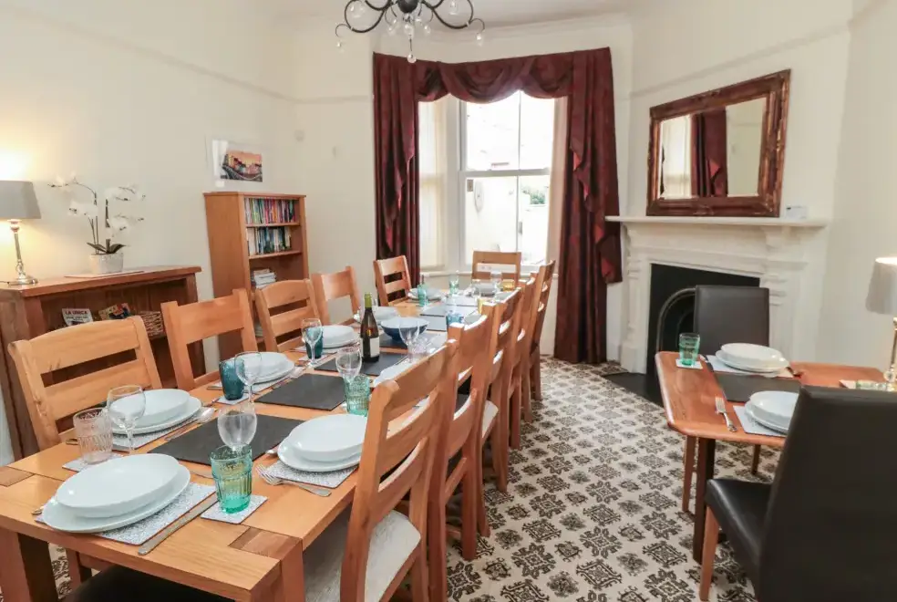 This five-bedroom townhouse offers flexible sleeping arrangements, making it suitable for various group configurations. The bedrooms include a king-size (zip/link) with TV, a family room with a double and a single bed, a second-floor double, a first-floor family room with a king-size and single with a truckle bed (ideal for children), and a superking size (zip/link) with TV. With en-suite facilities and convenient cloakrooms, comfort is guaranteed.