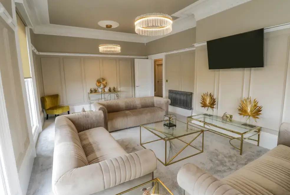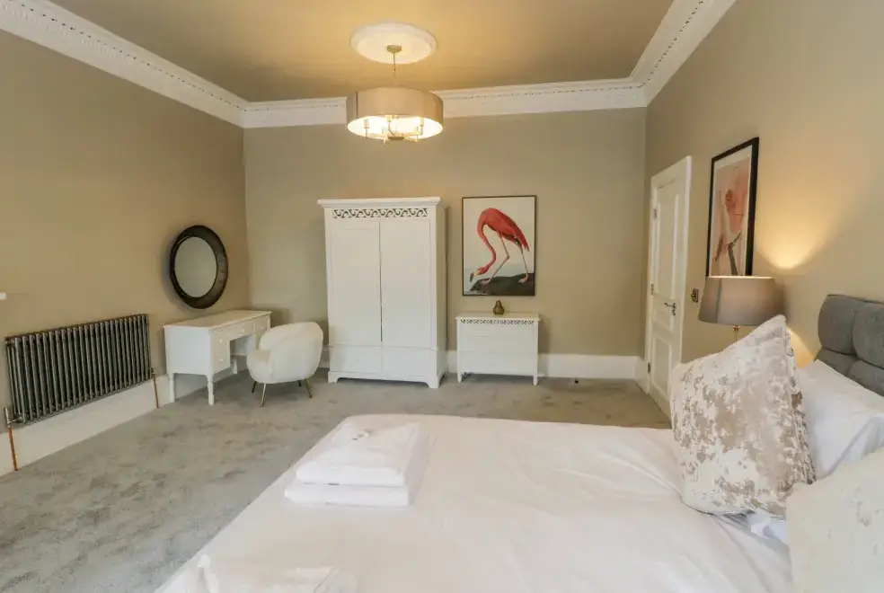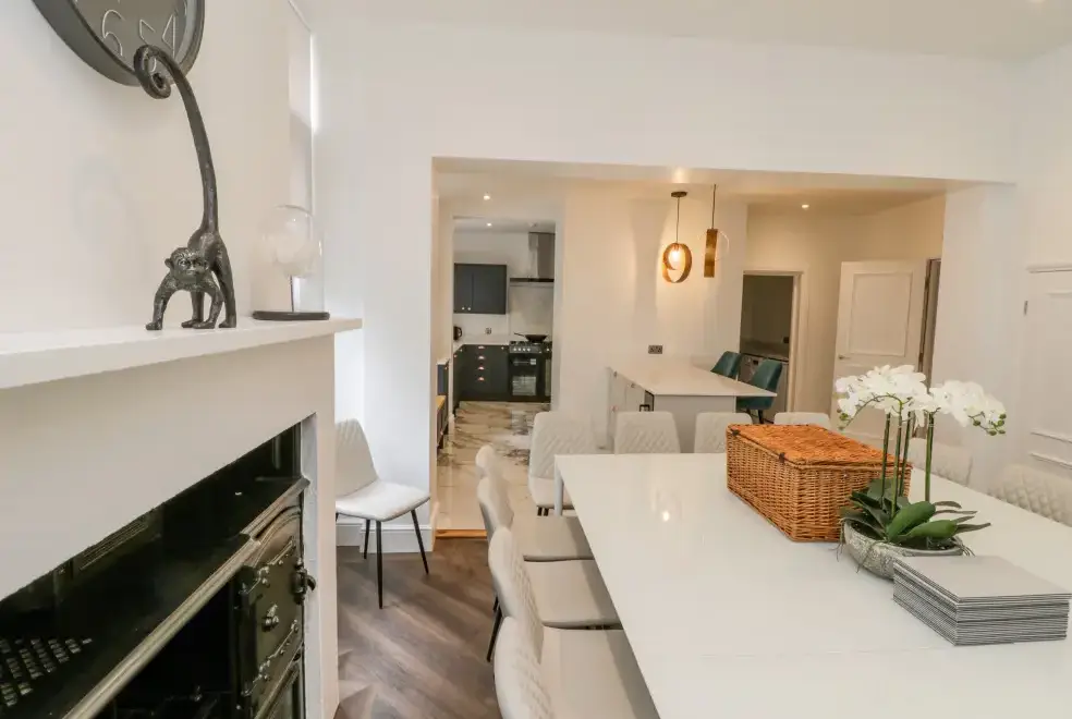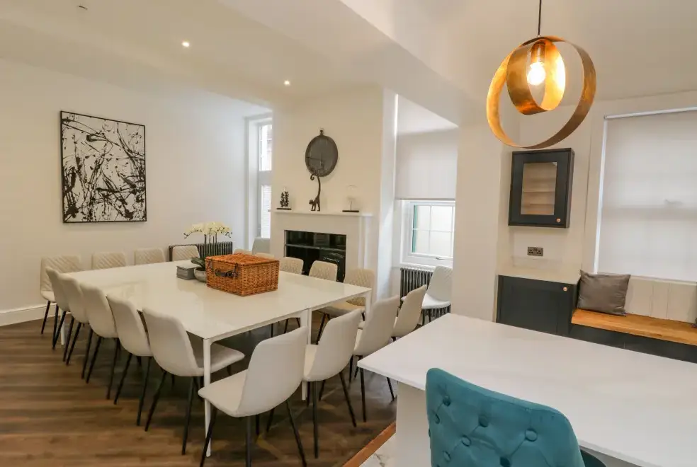 Railway House is a magnificent three-storey Victorian holiday home located in the heart of Scarborough, North Yorkshire. This ten-bedroom house is designed for large family gatherings, offering a range of luxurious sleeping arrangements including super-king-size and king-size bedrooms, all equipped with TVs. The property boasts multiple bathrooms, a cloakroom, a spacious kitchen/diner, and various entertainment options such as table football and a selection of games.