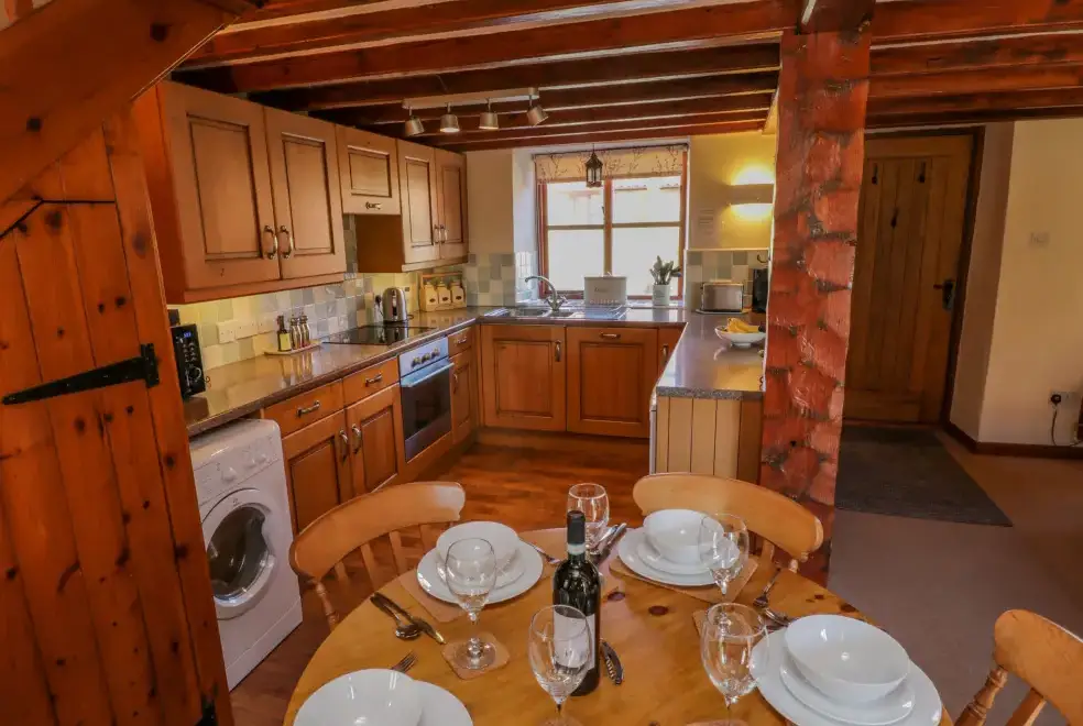 The stable door leads to a gravelled patio, offering superb views of the surrounding countryside, ideal for relaxing with a glass of wine as the sun sets. A short walk into Ruswarp village reveals excellent amenities, including a renowned butcher, a local pub serving real ale and food, and a village shop. Visitors can enjoy boating on the River Esk or indulge in coffee and cake at the riverfront tea room. Children will delight in feeding ducks on the river or visiting the Mini Monsterz soft play centre, perfect for rainy days.