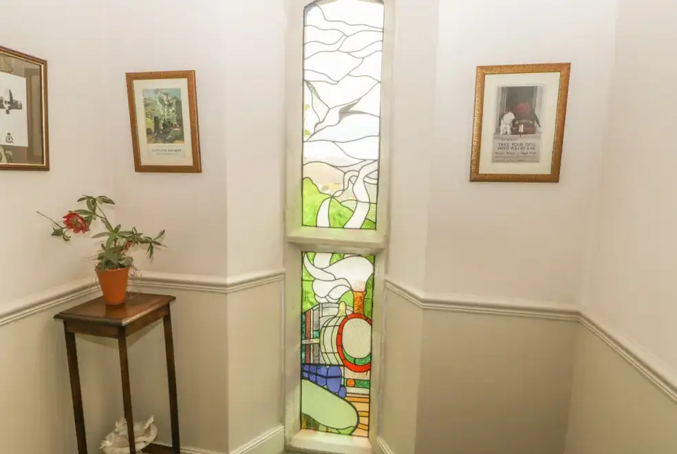 Located just 1.5 miles from the historic port of Whitby, this Grade II listed Victorian conversion in Ruswarp is perfect for family groups looking for first-class accommodation. Great care has been taken to retain and enhance original features like high ceilings, stone mullioned windows, a slate fireplace, and a stained glass window. Superbly furnished in a traditional style, the cottage offers two spacious sitting rooms, one with a woodburner and the other featuring a living flame gas fire. The well-equipped kitchen, with its AGA and Belfast sink, leads into a cosy dining room and a large utility room.
