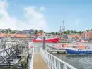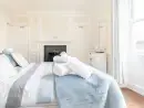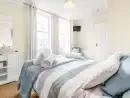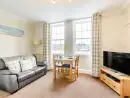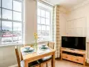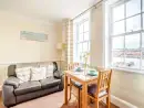Located in a historic Grade II listed building, Quayside Apartment boasts superb panoramic views over Whitby harbour. This charming accommodation preserves many character features, including high sash windows, window shutters, and panelled walls. The open-plan living area is both comfortable and inviting, featuring a decorative cast iron Victorian fireplace and a small dining table. The spacious bedroom is filled with light and includes a period fireplace. Guests can enjoy the stunning harbour views from all windows, watching boats and the iconic swing bridge.
