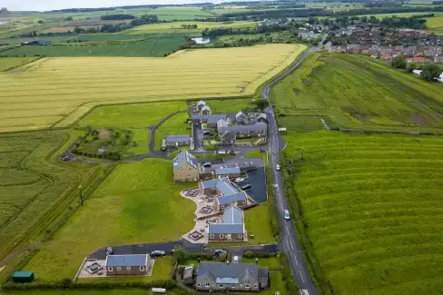 Restharrow Lodge: Coastal retreat in Bamburgh, Northumberland with stunning countryside views, sleeps 6, features a hot tub, welcomes 2 dogs, and is just a stone's throw from Bamburgh Castle and local amenities.