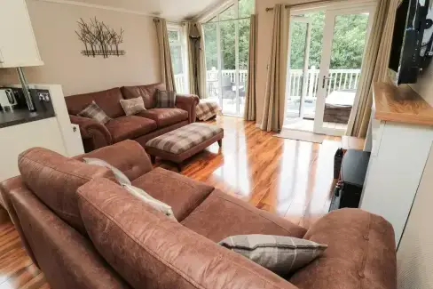 Nestled in Northumberland's serene countryside, Number 43 Burnside Lodge in Bockenfield Country Park offers stunning rural views, a luxurious hot tub, and sleeps four, but sorry, no pets are allowed; ideal for exploring nearby Felton and Alnwick.