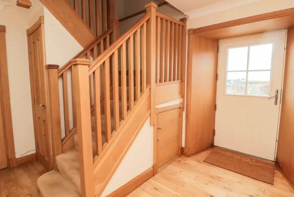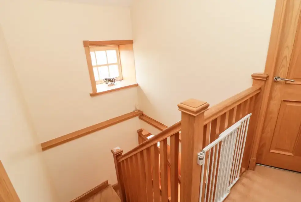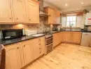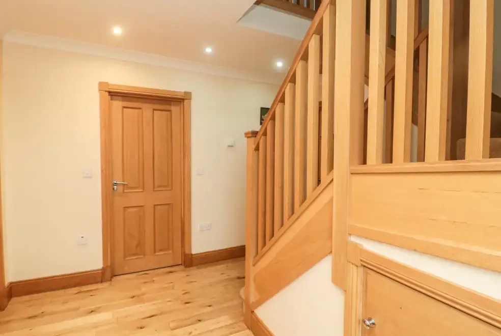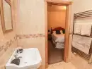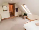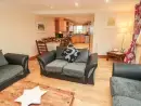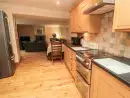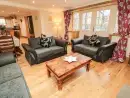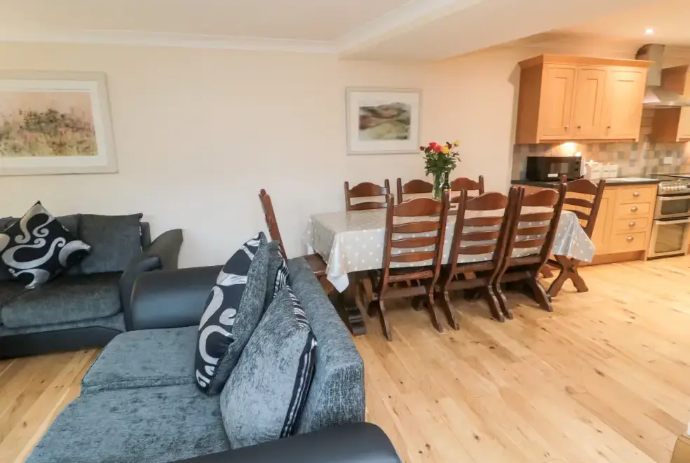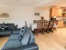 Inside the accommodation is good quality, homely and comfortable. The property features an often favoured open plan living area with a lounge area with comfy sofas, warming woodburning stove, flat screen TV and dining and is complemented by a roomy well equipped kitchen area. There are four bedrooms (one super-king size double with en-suite bathroom, one double bedroom with TV and en-suite shower room, one twin bedroom and one twin bedroom with an en-suite shower room).