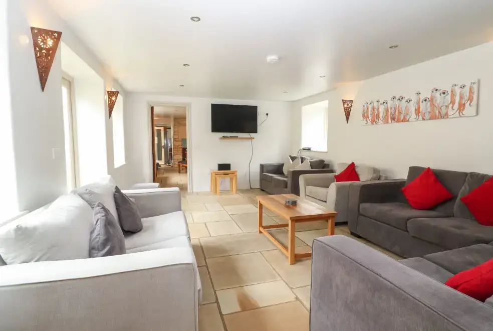 This exquisite holiday property in the Oxfordshire Cotswolds, near Burford, offers a serene escape for large groups. With seven bedrooms, including three with ensuite shower rooms and two with ensuite toilets and basins, plus a family bathroom, it's perfect for gatherings of friends or family. The property's high standard and blend of period features with contemporary touches create a minimalist, high-quality atmosphere.