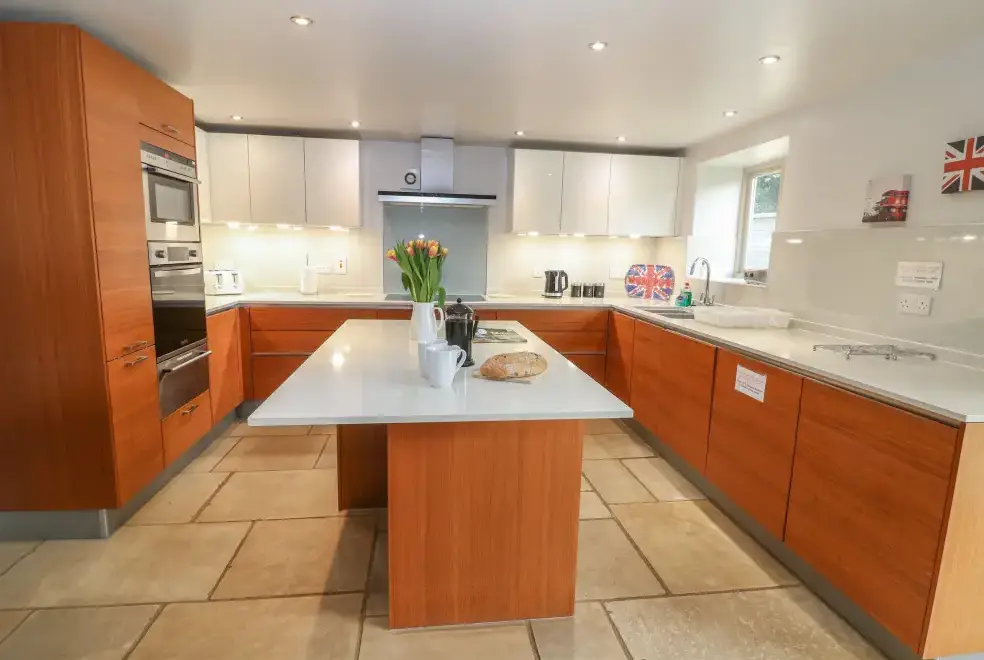 The main house features seven bedrooms, including a mix of super king and twin beds, with several ensuite facilities. The kitchen seats six, while the separate dining room accommodates 14. The living room includes TV and Sky Sports for entertainment. The annex provides additional sleeping arrangements with an external staircase leading to the first-floor room. Note: there's a £600 good housekeeping bond, and the property does not accept Saturday arrivals or bookings beyond weekends in 2026. Well-behaved dogs are welcome for £25 each per week, and a daily cleaning service is available separately.