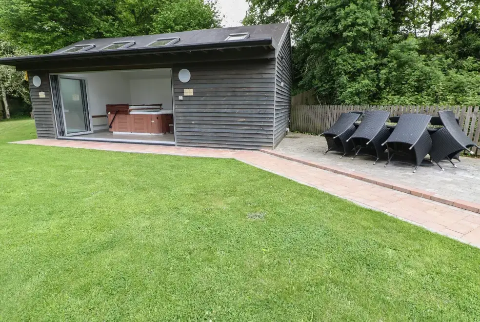 The ground floor's 'open plan' design cleverly combines separate rooms, providing a sense of togetherness without excess noise. Outside, the expansive gardens boast a hot tub, skittles, and table tennis, catering to both adults and families with children. The property accommodates a maximum of 14 guests, with infants not included in this number, and offers two cots for convenience.