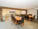 • Vast kitchen/diner with well-equipped stylish kitchen with electric triple ovens and hobs, kettles, toasters, microwaves, 2 fridge/freezers, 2 dishwashers, wine cooler plus washer/dryer for easy large group self-catering, and large dining area for up to 23 people (kept cosy with a warming woodburner),