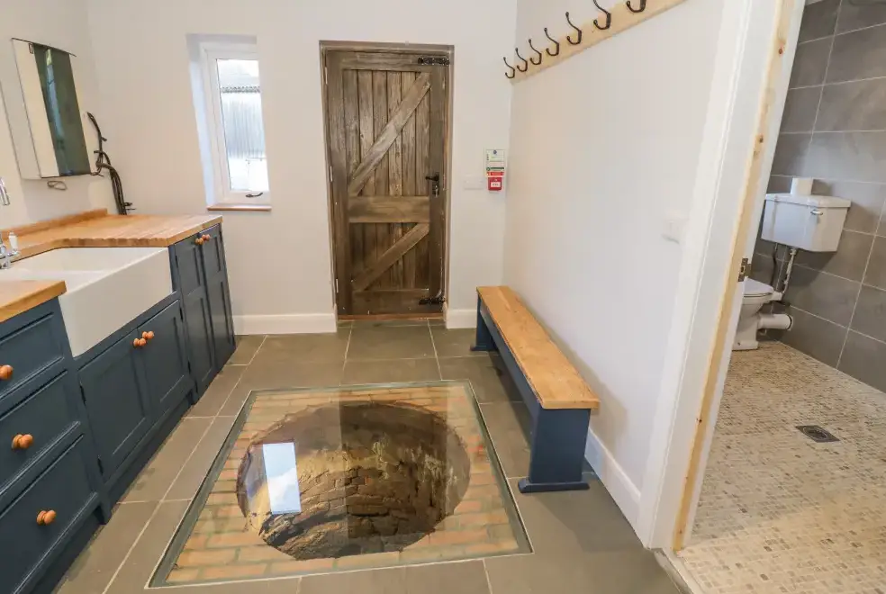 This house even has a boot room where you can leave your shoes and coats when you walk in, and a wine cooler in the kitchen!