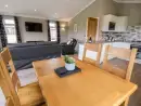 Within the lodge there is an open plan living area complete with lounge area with TV, dining area and modern kitchen, one king-size double bedroom with en-suite shower room, one king-size double bedroom and a family bathroom. Doors open out from the open plan area on to the decked area.