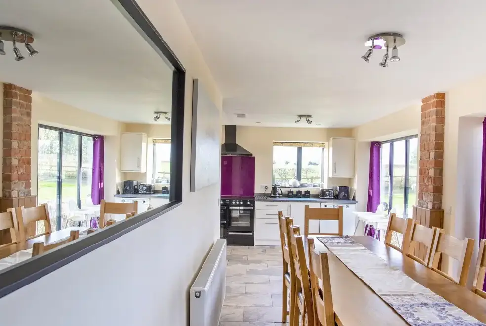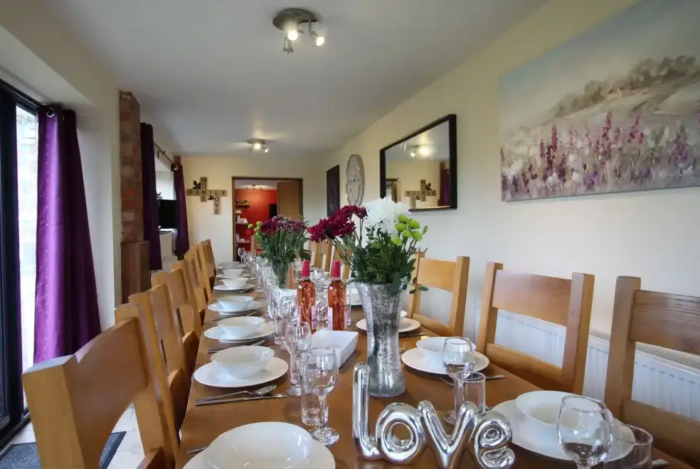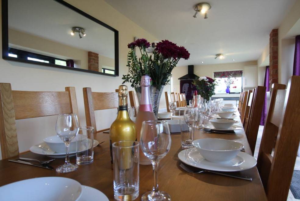 Looking for high quality group holiday accommodation in Shropshire? Whether for a special celebration, a birthday party or an anniversary party, renting Buttercups & Hayloft could be a great choice. These two welcoming holiday homes sit just metres away from each other and can be booked together for large groups and special celebrations. The large dining area in Buttercups seats up to 16, allowing you to celebrate those special occasions altogether.Inside 6 Bedroom 5 Bathroom Buttercups Barn: