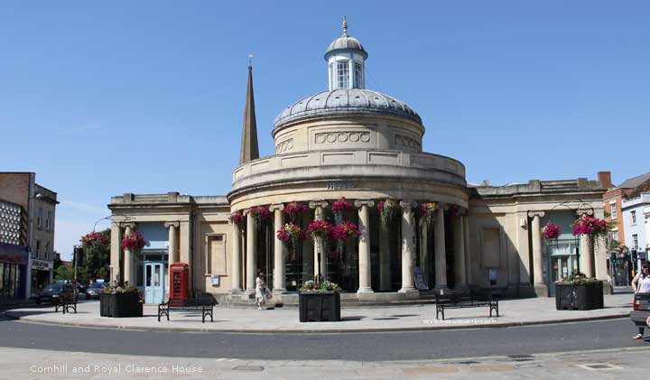 The main chain stores have deserted Bridgwater town centre for out of town shopping centres leaving a fairly quiet but thriving town with basic shops, restaurants and small businesses. The Cornhill and Royal Clarence House are two period buildings in the very centre of town. The smart Angel Crescent area by a small has a small shopping centre with budget shops and parking leads to the high street. There is a cinema, a library and small park near the River Parrett and old dock area with locks to the Bridgwater and Taunton Canal.