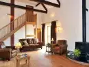 A spiral staircase leads up to the impressive large open plan style living and kitchen area complete with dining table to seat 16, which is at the heart of the Granary and features full height picture windows which look out across the surrounding farmlands. Relax in the comfy soft brown leather sofas and chairs.