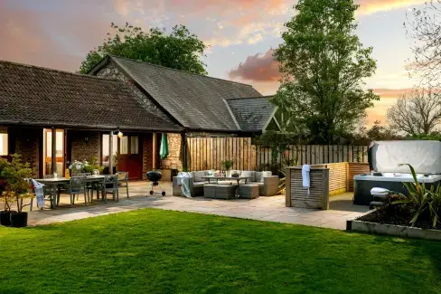 Outside, this welcoming barn conversion continues to impress with its beautiful generous garden which looks out to countryside, and is complete with a sociable outdoor formal dining area, as well as a more relaxed sofa style seating area. There is also a BBQ for making the most of alfresco living in summer time.
