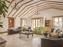 Lower Hedge Farm is the ideal country retreat. Situated at the end of a lane down a private track, it offers the opportunity to enjoy the peace and tranquillity of a rural setting with the modern comforts, style and charm of a house completely renovated for modern living. It has 5 bedrooms, one of which is a long attic room that spaciously accommodates 4 single beds.The house and grounds were completely renovated and refurbished over six years, restoring original features such as the many wooden beams, inglenook fireplaces, old bread oven and the enormous flagstones. Whilst retaining the original features, we have brought the house up to luxurious modern standards epitomised by the addition of the magnificent sun room with high beamed ceilings, under floor heating and large centrepiece fireplace.