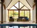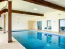 Ground floor: Entrance with slate floor. Cloakroom with WC. Large kitchen with 3 oven range cooker. Spacious combined living and dining room. Two en-suite bedrooms with shower WC and TV. First floor: Oak flooring throughout, 3 en-suite bedrooms, 2 with baths and WC, 1 with shower and WC, all with TV's. Additional large bedroom with wet room in ground floor annexe.Exclusive use of lage indoor heated swimming pool. Large garden with patio, BBQ and furniture, summer house by a natural pond, hot tub, childrens play area. Duvets with linen and towels. 3 or 7 night stays from a Friday and 4 or 7 nights stays from a Monday. No Pets. No smoking in the buildings.