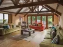 The lounge is truly roomy and features ample comfy seating. The vaulted ceiling with exposed beams and warming woodburner give the room plenty of character and the large bi-fold doors open out to a Juliet balcony with great views over the Somerset countryside. With WiFi and SKy TV with Movie and Sky Sports there's plenty to keep you entertained.The luxurious country style kitchen with its American style fridge/freezer, 2 dishwashers, microwave, 4 oven range and large dining area to seat 20 is a real treat and ideal for celebrating those special occasions.