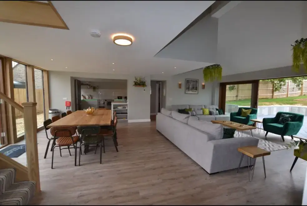 Searching for a luxurious sleeps 12 holiday home to rent in England’s beautiful West Country for a getaway with friends or family? If so, the Cider Barn in rural Somerset near Glastonbury, with its 6 en-suite bedrooms, high quality stylish interior, inviting bubbly private outdoor hot tub, and access to excellent leisure facilities at the onsite Sedum Spa, could be the perfect choice.