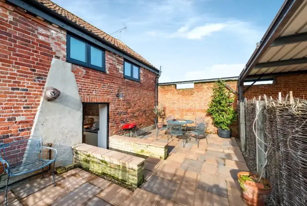 Outside, is a lovely patio area, which can be an ideal spot to soak up the sun in summer. The patio is equipped with garden furniture and a barbecue, ideal for good weather and alfresco living in summer time.