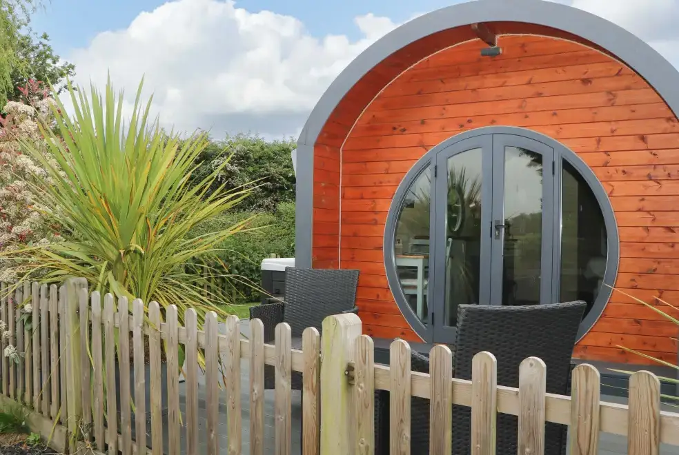 The Willow Pod is an idyllic retreat designed for couples seeking a peaceful getaway in Sussex. This open-plan living area features a kitchen equipped with a combi oven/microwave, ceramic hob, and fridge, alongside a dining seating arrangement for two. The cosy sitting area complements the living space perfectly. Rest comfortably in the double bed, serviced by an en-suite shower room. Externally, enjoy a patio with furniture, a hot tub, and convenient off-road parking for two cars.