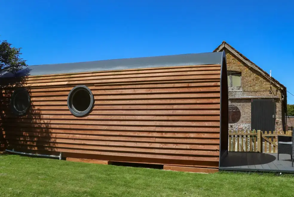 Positioned in the tranquil village of Yapton, West Sussex, the Willow Pod is surrounded by picturesque fields filled with grazing horses and abundant wildlife. After a day of exploration, guests can unwind in the open-plan living area, indulging in a good book on the comfortable sofa. The kitchen, though compact, is well-equipped for home-cooking, and the dining area provides a romantic setting for meals. The outdoor patio is perfect for enjoying the sunny Sussex weather.