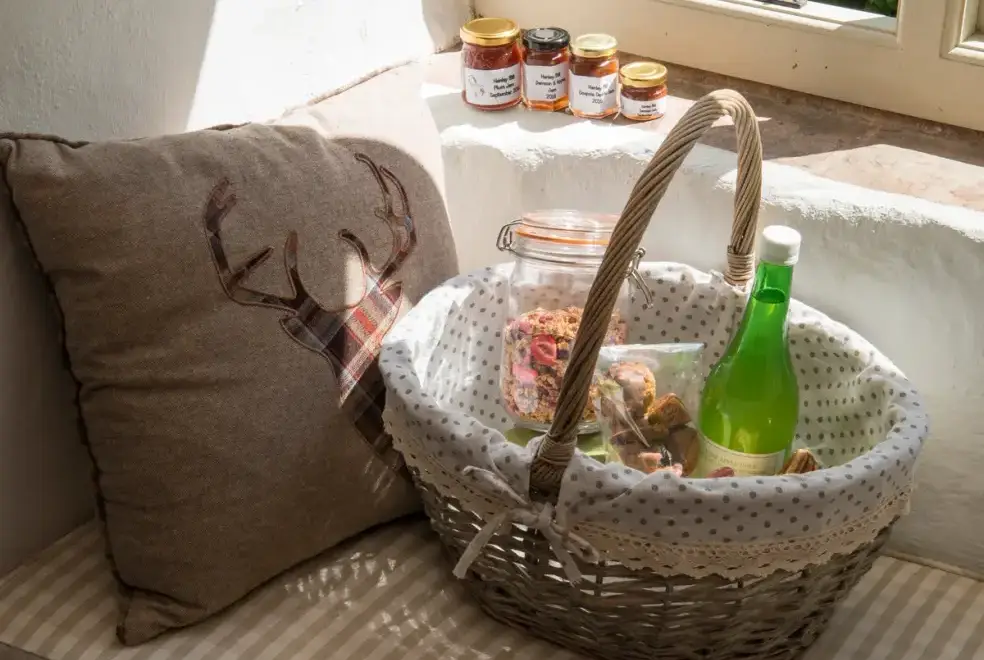 Guests at Mill Cottage will enjoy a bathroom with a slipper bath and an open-plan living area that includes a kitchen, dining area, and sitting area. The cottage also provides off-road parking for two cars and a private lawned garden complete with a patio, furniture, BBQ, and a wood-fired hot tub. Access to 30 acres of grounds enhances the appeal of this luxurious property, making it perfect for a romantic getaway.