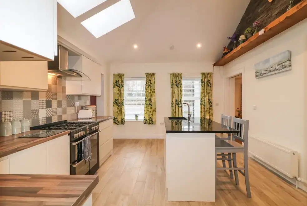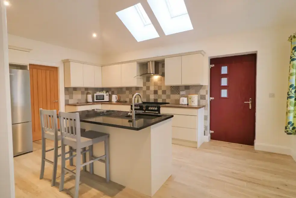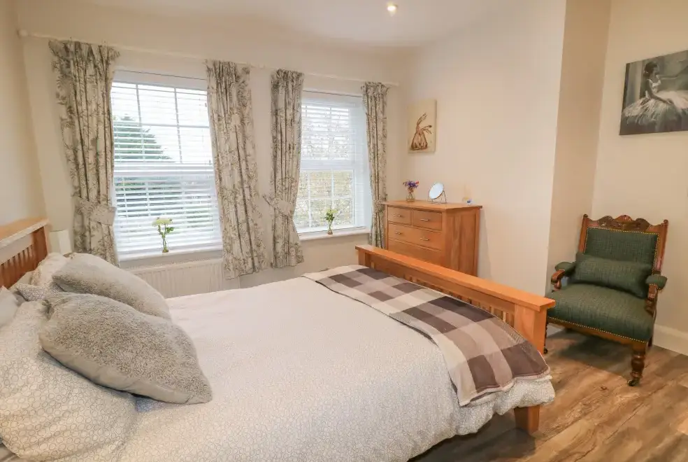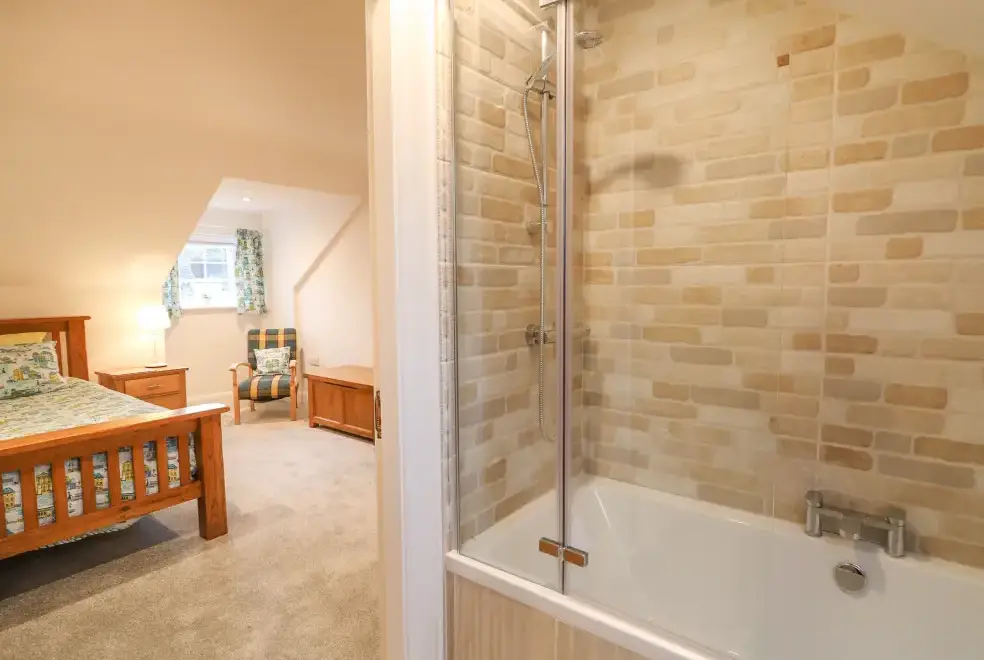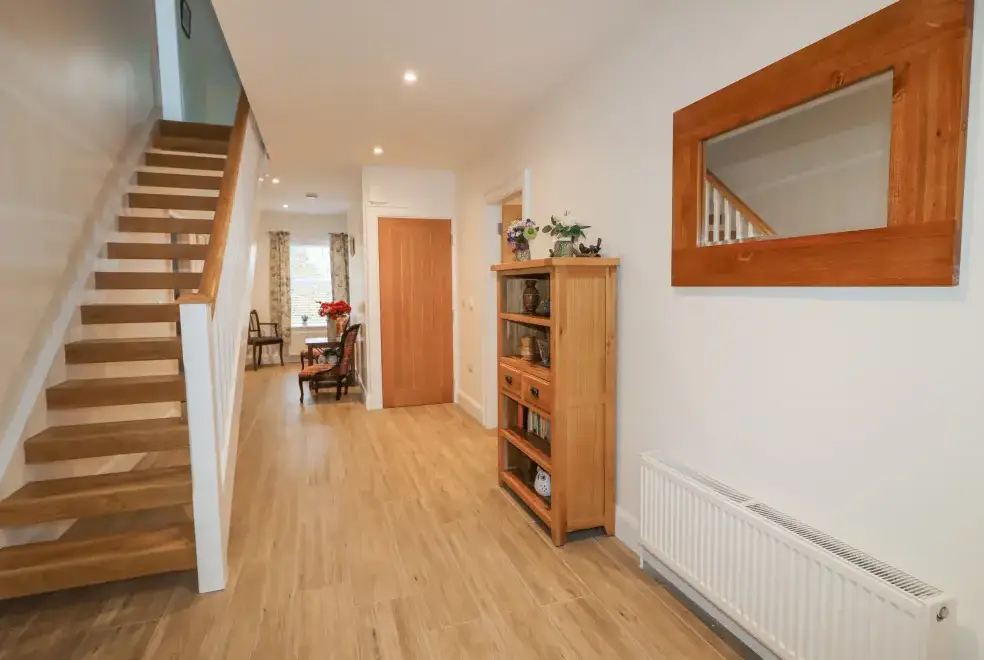 Four bedrooms: 1 x super-king-size with en-suite bath, shower over, basin and WC, 2 x king-size, 1 x single. Ground-floor bathroom with bath, walk-in shower, basin and WC. Kitchen. Utility. Dining room. Sitting roomThis owner/agency has featured on countrycottagesonline.com since 2000