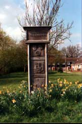| Memorial stone | Cottages, rub shoulder to shoulder down the hill |