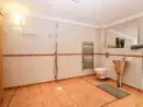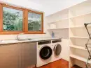 A long dining table can be set for ten people and is super for a large group on holiday. Eat together, live together and laugh together. The dining area leads on to the very smart white kitchen. Store food for meals and snacks away in the fridge freezer. The kitchen cupboards contain all the crockery, glasses and cutlery that you will need. Kitchen tools hang on a rack on the wall and saucepans await your culinary plans. Find a coffee maker to percolate your morning coffee and a microwave to heat up milk for lattes or hot chocolate. Holidays are all about indulgence and having a good time and it’s all within your control – you just have to make it happen; the kitchen is equipped for it. A dishwasher is there to hide and clean all used meal items. A generously sized utility room houses the washing machine, dryer and airer which will help keep everyone’s clothes clean and up-to-date.